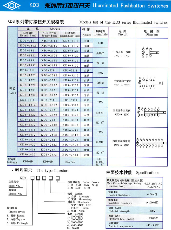 產(chǎn)品型號:KD3系列帶燈按鈕開
